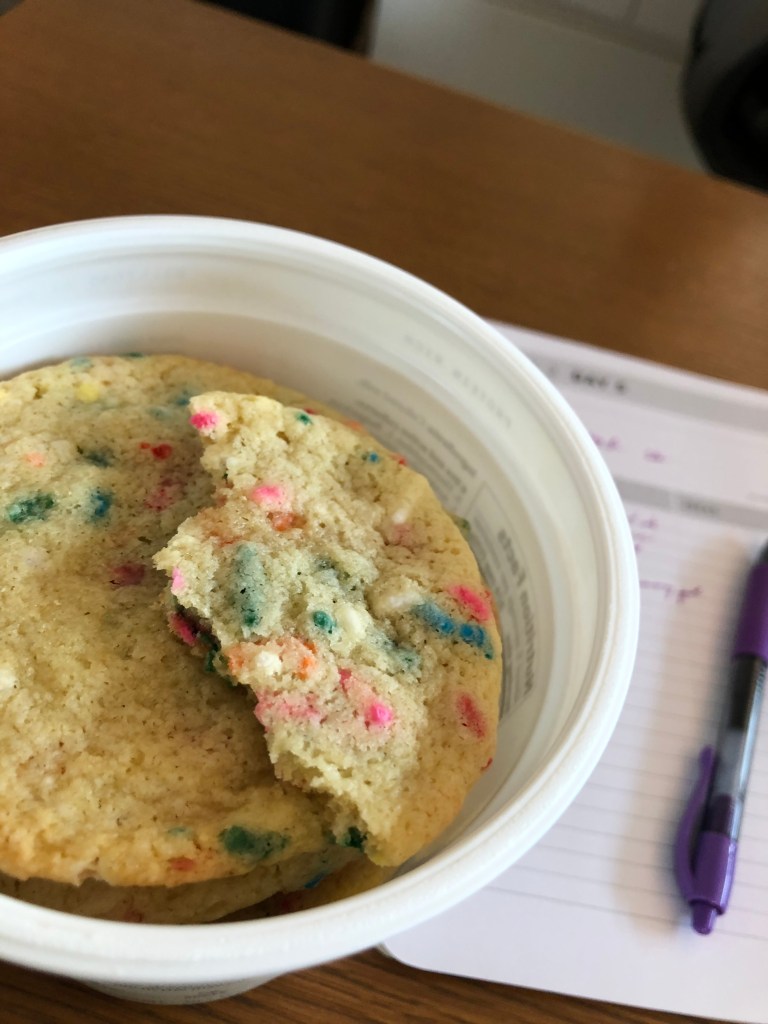I made Funfetti Cookies (from scratch) this week, and they weren’t bad. They were crisp and soft in all the right places. But there wasn’t any depth to them. I have heard that the way to get that perfect Funfetti flavour is to use imitation vanilla extract; they didn’t taste like the box. But that’s the thing. They didn’t taste like anything. They were just a sugar high. I’d thought that was going to be enough for me. It used to be enough.