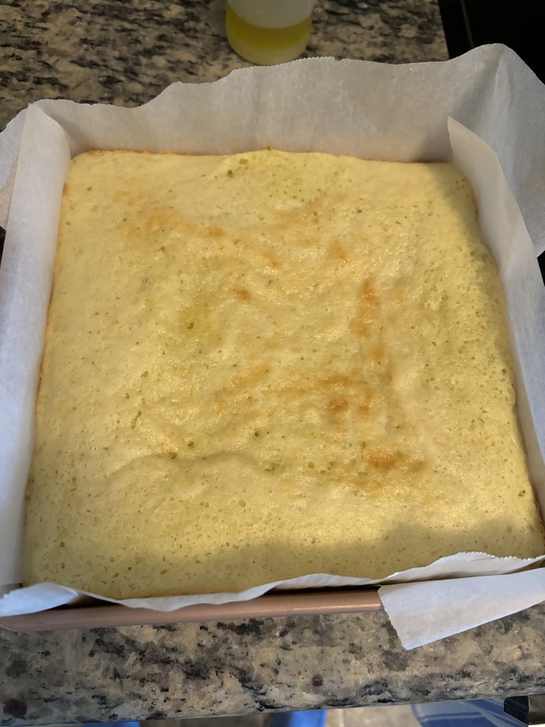 She has a decent recipe for lime bars, which are a sheet cake/bar of plain vanilla cake with lime frosting on top. I remember it being good, if you don’t mind doing the complicated math of figuring out how to make your own self-rising flour at home. (It isn’t that complicated, I’m just salty at three-years-ago me who decided to write out all the math but not leave the answer for herself. How dare she! …how dare… I?) But when I went back, I realized there was no lime in the cake itself. And since I went down this road to get rid of some limes, I decided to try and do better. I settled on adapting this snacking cake to be lime instead of Meyer lemon, and I was quite pleased. Plus, I got to use up some crème fraîche that I had no concrete plan for. Win win.