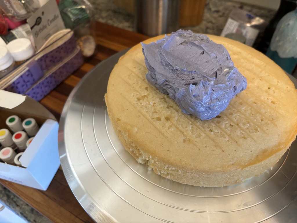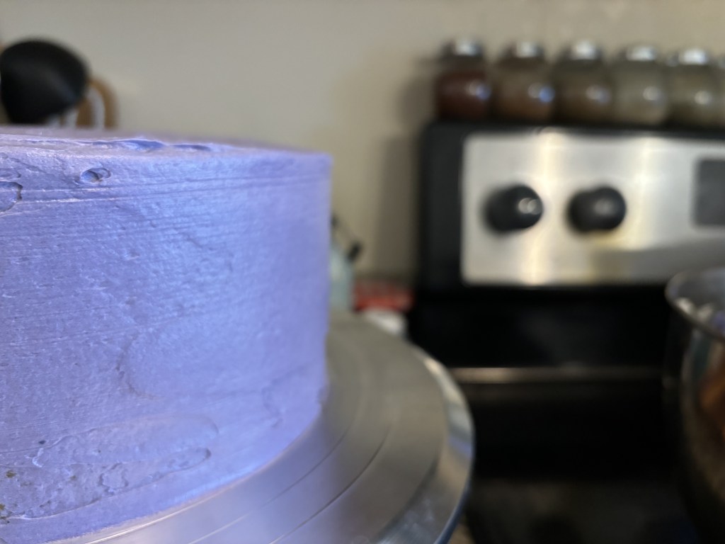 Sarah wins the Ermine Buttercream wars, as if that was a thing. She beat out Two Chicks (lumpy?) and Lagerstrom (tasteless?) and Zoe (not as amazing as I dreamed it would be, considering I sacrificed a vanilla bean?). The texture’s simply unsurpassed, and it’s not that sweet of a frosting. If you were wondering, a principle problem with Ermine is that it absorbs flavour like crazy. The solution is to add more flavouring until it tastes right. That’s normal and ok. Here, I worked too hard to get to purple and had to add some more vanilla to mask the chemical-y taste of the gel food colouring. Straight purple got me to grey, so I had to add blue and fuscia, which was just a lot of dye by the end. Why is purple such a challenge?