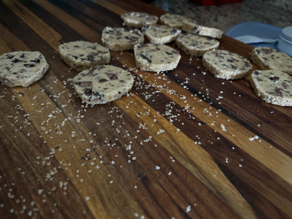 We can debate the first one (it’s true, but I suppose we could have an argument where you’d be wrong. That would be fun for one of us), but the second one is more interesting. It’s a fun little perspective shift, isn’t it? Roll all the cookies flat, then stamp them out, versus forming them into round logs and letting a couple minutes of initial effort pay off when you slice them in a few hours. All of a sudden, getting perfect-ish circles requires no special tools. Barring gravity, and it would be way more special to work without that than with it.