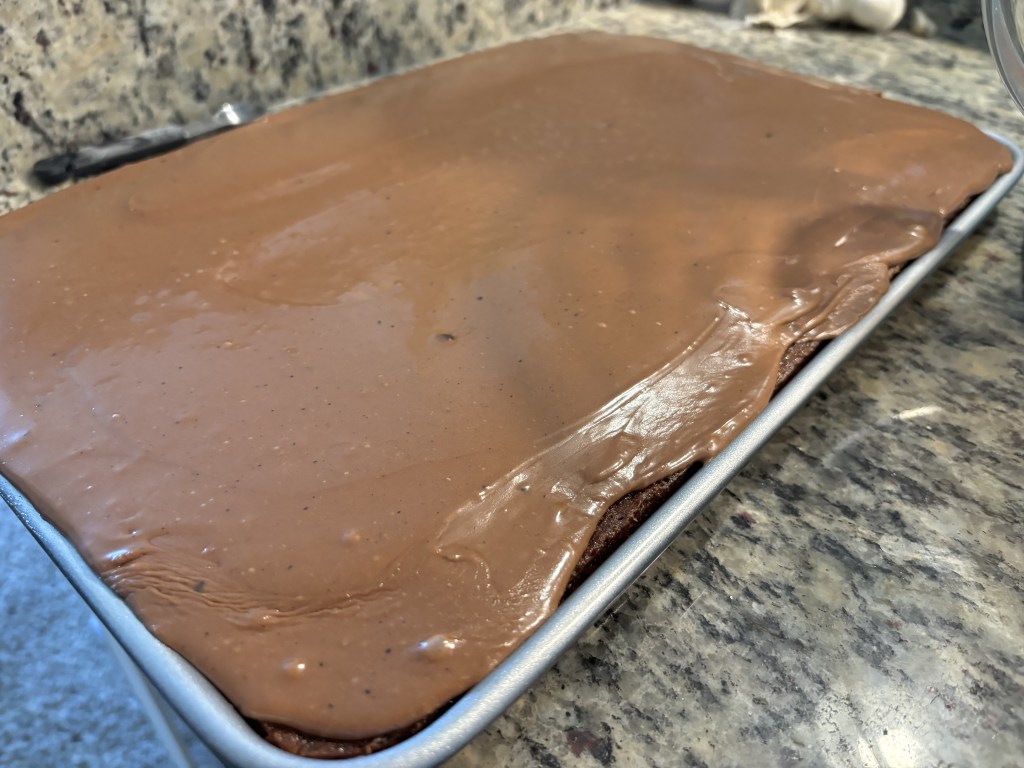I don’t pretend to understand the science of it. So I’m just going to call it “sufficiently advanced technology.” AKA… magic. Why does boiling both the chocolate/water/oil base of the cake and the butter/milk/chocolate combo for the frosting do what it does? What’s going on under the surface? Behind the scenes?